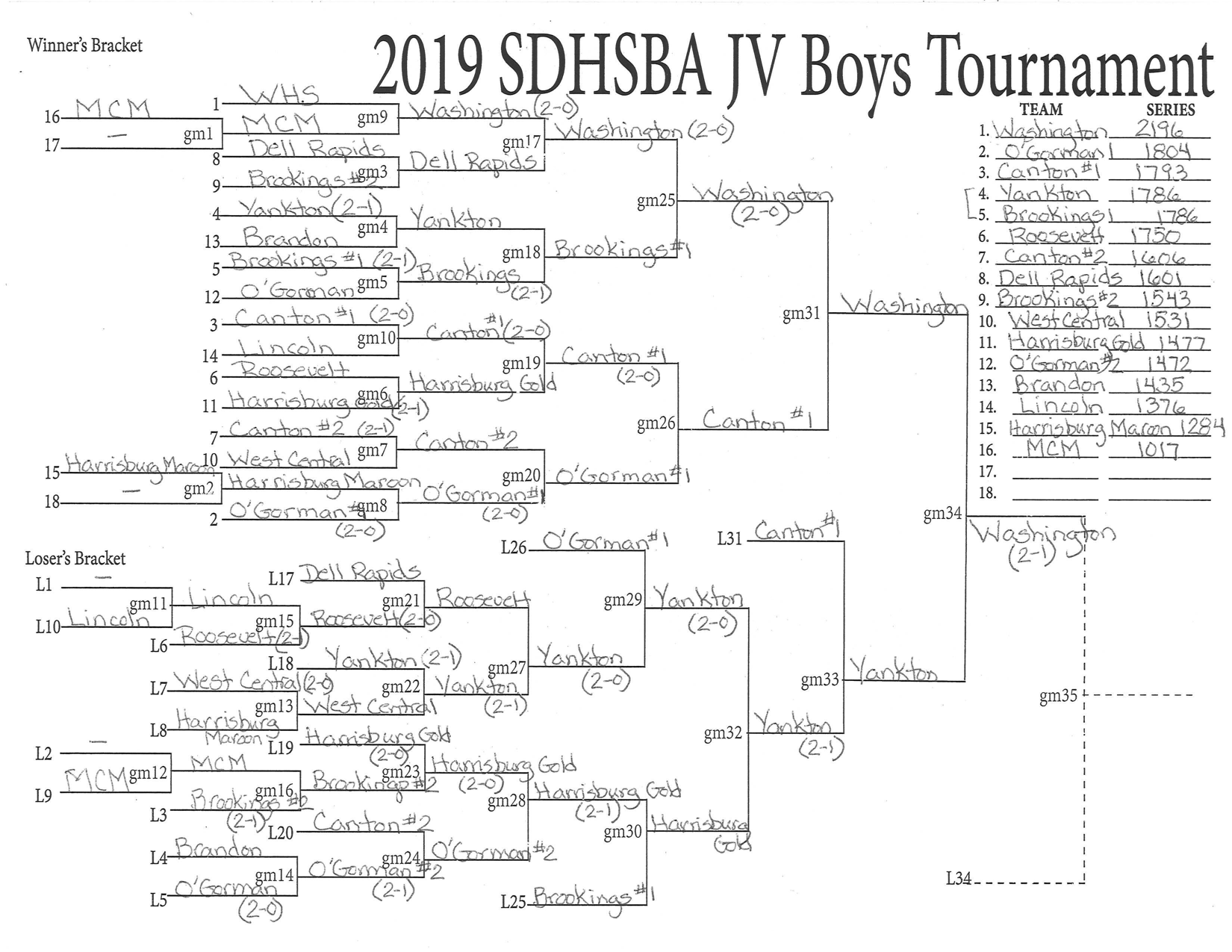 It was the senior-powered Washington boys who went straight to the championship. Yankton, who started the day out in fourth, lost to Brookings in the second set of Baker rounds, but battled back to take on Washington in the championship. The top-seeded Washington won it all and Yankton took the runner-up spot.
