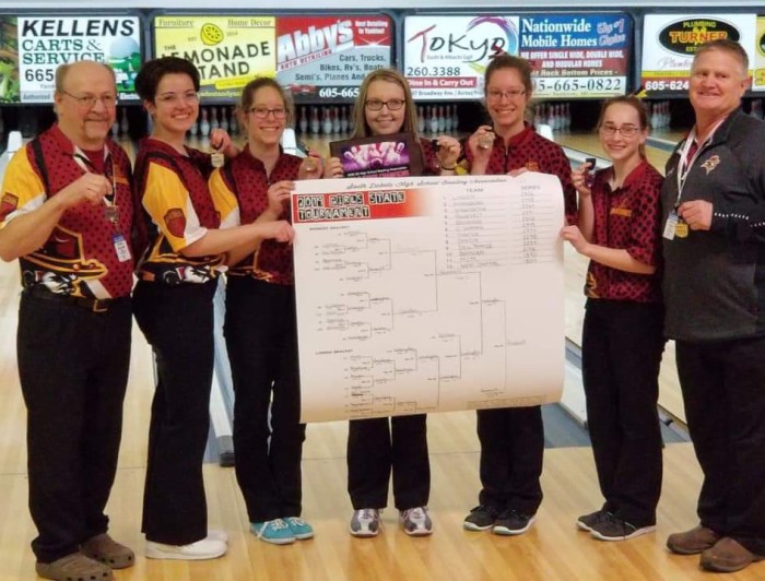 The top-seeded co-conference champions Washington marched their way through the first three matches, but Harrisburg sent them to the losers bracket where they eventually lost to the home alley team, Yankton. The undefeated Harrisburg went on to face Yankton in the final match. It proved to be a very exciting final, as Yankton came back to defeat Harrisburg in consecutive matches, claiming the state championship title for the first time in school history.