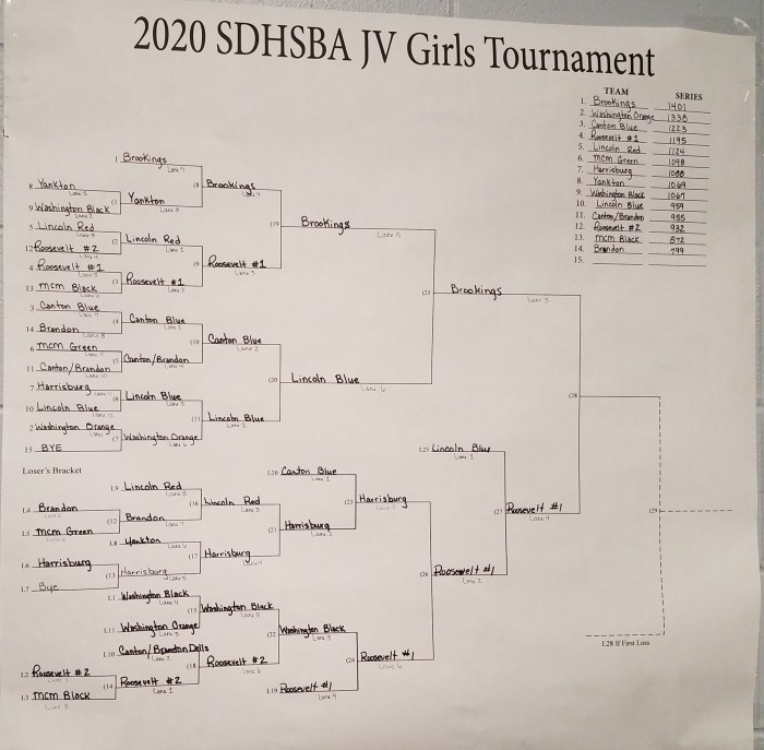 Brookings marched straight to the championship round. Roosevelt #1 lost to Brookings but worked their way back through the losers bracket to take on Brookings in the championship. In the end, Brookings took home the title and Roosevelt #1 placed second. Lincoln took third.